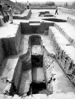 在元氏南白娄村的一处高地上,来自武汉大学的考古人员已经在这里发掘了近一个月,他们的成果昨天展现在了记者面前,高地东面有20多个长方形坑,坑不大,分布也没规律,但大多是两个一组;高地西面则有6座古代墓葬,它们呈南北方向,都有墓室、墓道,看着明显比东边的墓葬要气派,其中一个墓葬中还有具遗骸,头冲东脚冲西。武汉大学考古教研室研究生宋海超告诉记者:“东面的是汉代墓群,两个一组合葬比较多,都是夫妻,这里出土了成组的陶器,有豆、鼎和壶等,还有几件彩绘陶器。可以看出当时的等级差别比较大。西面初步推断是唐代墓,墓主人身份目前不清楚,但身份不低,不是平民百姓。”