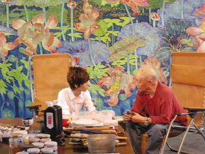 黄永玉在北京的居所——万荷堂充满了田园风光和艺术气氛,成了本次“求学”对话的最佳地点。来到京郊,渐渐行至万荷堂,原本因胃痛而精神不佳的郭敬明忽然紧张起来,见惯了大场面的他反复表示“很紧张”。没有上课铃,《大师课堂》悄然开始,“老师”也走了出来。首次见到黄永玉老先生,郭敬明不停地翻看手中的文稿,为接下来的会面做着准备。不过,我们从他的眼神中,也看出了他内心的期待。