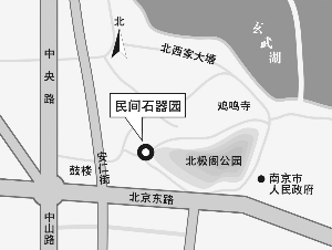 出了玄武湖公园,在解放门右侧有一条小路,曲径通幽一直向西延伸。顺着山势下行,过了鸡鸣寺的后门不远处,路的右旁冒出一方石碑,上面刻着“民间石器园”五个字。推开锈迹斑斑的铁门,最先映入眼中的,就是两口古老的石井。
