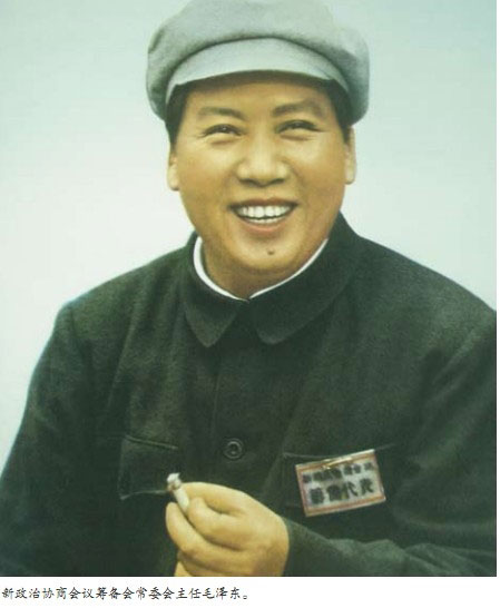 1949年6月11日,新政协筹备会第一次预备会在香山毛泽东的住所举行。会议大体议定了新政协筹备会的参加单位、人数和人选,以及新政协大会参加单位和人数等。15日晚,新政协筹备会第一次全体会议在北平中南海勤政殿开幕。出席会议的有23个单位的134位代表,其中“党员43人,进步人士48人,中间人士43人,其中中间偏右者只有16人,在进步人士中有15个秘密党员。共产党对政协筹备会可保障绝对的领导”。第二天,筹备会协商通过了由21人组成的常务委员会,推选毛泽东为常务委员会主任,周恩来、李济深、沈钧儒、郭沫若、陈叔通为副主任。