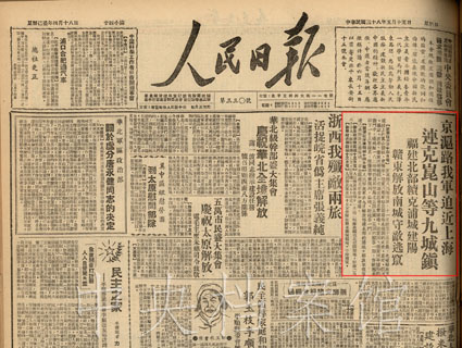 5. 1949年5月15日,《人民日报》关于人民解放军迫近上海的报道