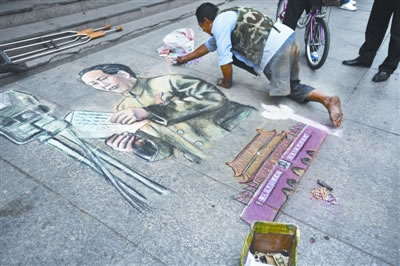 坐在路边台阶上,记者同从兰桂聊起他的身世。今年47岁的他出生于山东临沂农村,16岁因骨肿瘤左腿被截肢。截肢卧床时,他喜欢上了画画,“画画给我带来许多乐趣”。因为母亲年迈,大哥在矿上靠苦力赚钱,他想要自立,21岁就离开家乡,以艺行乞,至今流浪足迹遍布全国20多个省市。