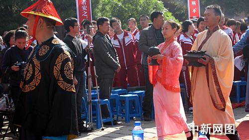 伴随着钟鼓齐鸣,40条论语牌树立在大典两侧,60名优秀学子举行成人典礼,意在秉承孔子的思想,发扬圣人的风气。