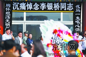 今天上午10时,毛泽东卫士长李银桥追悼会在八宝山殡仪馆举行。李银桥生前同事、友人和众多满怀对老人崇敬之情的市民参加了遗体告别仪式。李敏、毛新宇等毛泽东亲属也来到追悼会现场。