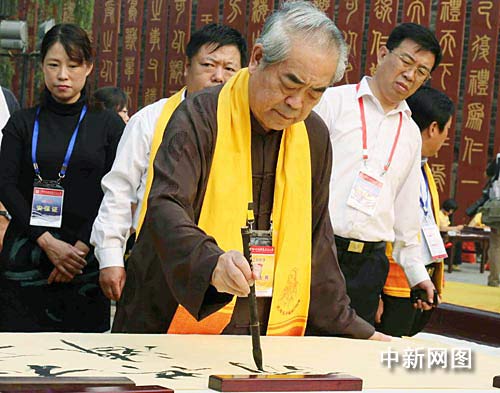 中新网曲阜9月28日电 (记者 张璐 王超)作为今年孔子文化节的突出亮点之一,今天上午举行的己丑年山东曲阜公祭孔子大典祭文由著名书画名家、国学大师范曾亲自撰写,并于此间孔子文化园刻碑留念。