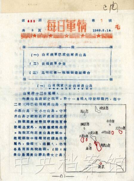 长山列岛位于山东半岛与辽东半岛之间,扼渤海湾门户,由南、北长山岛等17个岛屿组成。山东半岛解放后,退据长山列岛的国民党军陆战第2团等部,破坏渔业生产和海上交通,妄图封锁渤海湾。1949年8月,中国人民解放军山东军区指挥进行解放长山列岛的作战。11日晚,第24军第72师和警备第4、第5旅分别从蓬莱县刘家旺、栾家口、解宋营起渡。12日凌晨,警备第4、第5旅攻占长山列岛两翼大小黑山岛、大小竹山岛,牵制停泊在南北长山岛的国民党军舰艇。第72师在友邻配合下,接近南北长山岛,并在炮火掩护下迅速登岛,与国民党守军展开激战,上午攻占南长山岛,下午占领北长山岛。尔后以警备第5旅为主,向砣矶岛、大小钦岛、南北皇城岛发展进攻。至20日,国民党守军残部弃岛逃遁,人民解放军收复了国民党军队占领的大小岛屿,歼国民党军15OO余人,山东省全境解放。