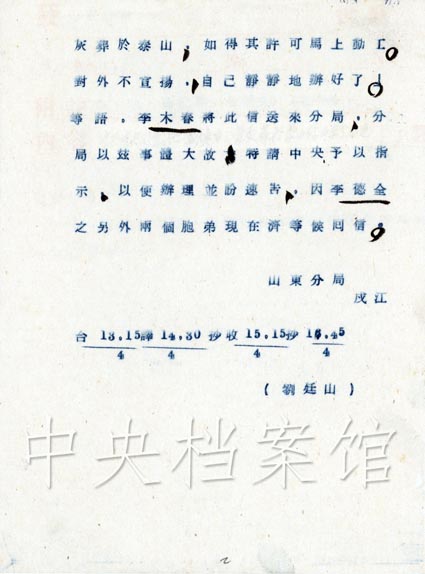 4. 1949年11月3日-5日,山东分局关于李德全要把冯玉祥的骨灰葬于泰山的请示及中央同意的批示(2)