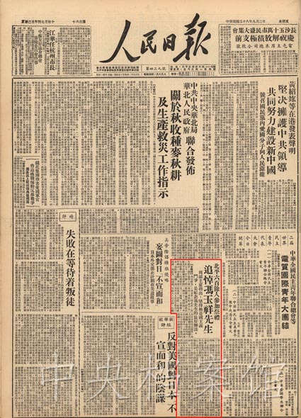 5. 1949年9月1日,《人民日报》关于冯玉祥先生遇难经过的报道