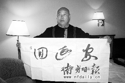 记者:你是中国毛体书法家协会的主席,又是毛家后人,肯定毛体书法很不错吧。