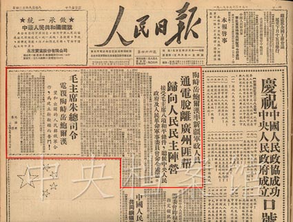 1948年8月,西北军政长官公署副长官陶峙岳兼任新疆警备总司令,1949年1月,包尔汉担任新疆省政府主席兼保安司令。1949年4月,与中国共产党有联系的国民党和谈代表屈武回新疆,策划和平解放。中共中央派邓力群到新疆进行争取和平解放的工作。9月25日,陶峙岳向毛泽东、朱德、彭德怀及中国人民革命军事委员会发出起义通电:自即日起,与广州政府断绝关系,竭诚接受毛泽东之八项和平声明与国内和平协定,全军驻守原防,维持地方秩序,听候人民革命军事委员会及人民解放军总部之命令。26日,包尔汉也发出起义通电:将省政府改组成新疆省临时人民政府,暂时维持全省政务,听候中央人民政府的命令。9月底,起义部队改编为中国人民解放军第二十二兵团,新疆和平解放。