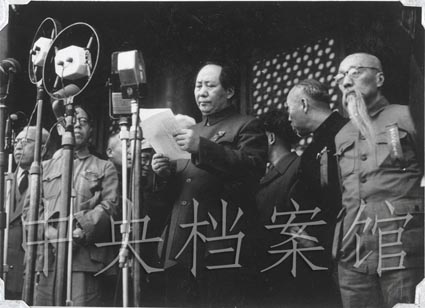 8. 1949年10月1日,毛泽东在开国大典上宣读中央人民政府公告