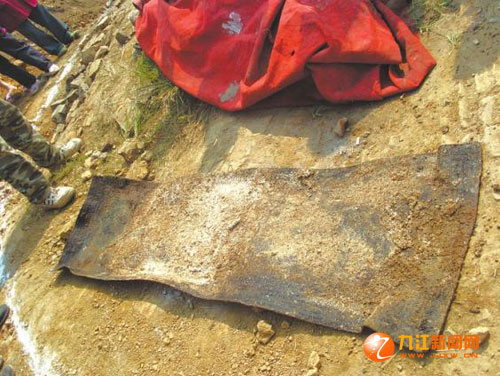 第二天上午记者闻讯赶到现场,见到一座五六米高的土坡被掘去一半,古墓的白灰空洞悬在土坡切面的半腰处,棺木散落在土方旁。泥地上有一大摊水渍,有人提醒道,别踩着,那是从棺材里流出来的水。女尸已被人用废旧的红地毯裹卷着,停放在不远处的平地上,旁边还有一张潮湿的旧篾席。后来获知席子原先垫于尸首下,是从棺木中取出的。仔细一打量,篾席上长时间压出的人形痕迹清晰可见。围观的人越来越多,不时有人上前,欲掀开地毯一睹新奇,好在两个民警一旁维持秩序,好事者才不敢妄动。