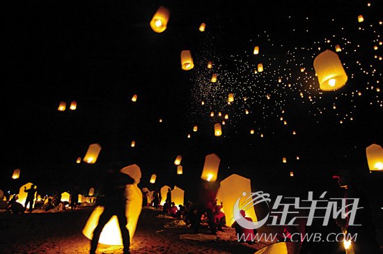 此时,天空中已飘飞着无数盏星星点点的“孔明灯”。