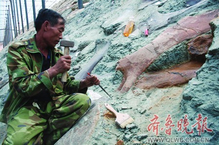 记者了解到,此次恐龙化石挖掘工作已经持续了近两年时间,诸城市恐龙博物馆馆长李敦景告诉记者,此次发掘过程中不但惊现一具世界最大的鸭嘴龙化石,还首次发现了角龙类化石。