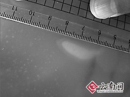“太不可思议了,它每一天都在生长,越长越大。”郭彩祥甚至还用摄影机等设备详细观察和记录着小白点的生长情况:7月28日,白色体继续长大,长度约0.8厘米,形状与液体环境相似;8月28日,白点长至约1.2厘米大小的明显个体,肉眼可以感觉到尖端(头部)在液体环境中的伸缩痕迹,同时还可以感觉到白色表皮部分的水波状移动;9月28日,液体中的白色体,长度达到两厘米左右;10月6日,长达2.2厘米、宽达0.6厘米左右,几乎占据液体水槽整个空间。