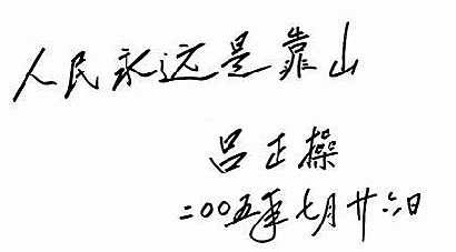面对本报记者带去的冀中人民的问候,老将军欣然提笔,写下“人民永远是靠山”,并深情地署上自己的名字,托付本报捎给冀中父老、捎给河北乡亲。老将军郑重的表情、深情的寄语,字字千钧,亲切动情,至今犹让本报记者动容。