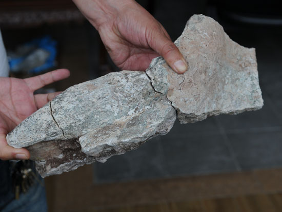 据国家文物局网站消息,10月11日,中国地质科学研究院地质研究所古生物专家吕君昌、省自然博物馆副馆长金幸生专家应邀到达化石现场。经鉴定,确认为甲龙类骨骼化石,距今约9千多万年。从目前发现的骨骼判断,至少有两个同一属科不同个体的材料。其中一个长约七八米左右,现已发现肠骨、甲板、肋骨、坐骨近端等骨骼化石,另一个体目前只发现两节小趾骨化石。当地相关部门将组织有关专家和专业人员进行抢救性保护发掘工作。