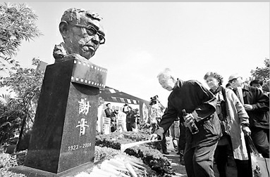 一个月前,谢晋铜像在上海福寿园艺博苑安放妥当。两米多高、金色,巨大的体积感在福寿园中显得很另类。“一开始觉得太大,有人不同意放。我说电影界里还有谁能比谢晋大,就大一点吧。”话虽然这么说,可是如今的影视娱乐圈,已经和谢晋时代大不相同。对大师的“崇拜”,并不只是对美好艺术和高尚人品的赞扬那么单纯。“很多明星都是谢晋培养的,但是学生对他,不都像他对学生一样。”