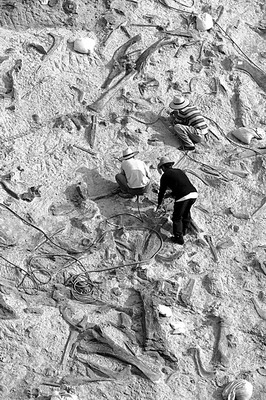 赵喜进说,恐龙化石在装架展示、研究利用的同时,要特别注重保护。挖掘或裸露的化石很容易风化,必须及时打上胶,并定期作防腐处理。“除建成室内陈列馆展示外,发掘的其他化石研究后,要及时回埋。”