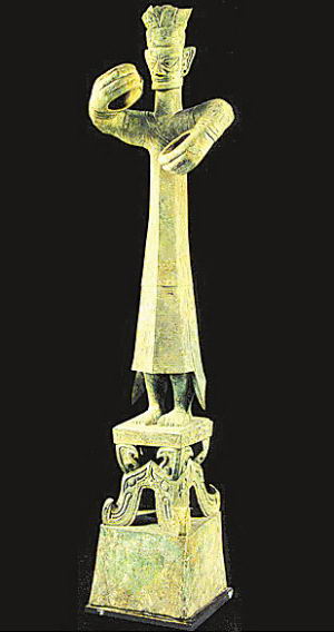 那么,“纵目”的蚕丛是什么样子?在四川省广汉市三星堆两个商代大型祭祀坑中的上千件蜀国珍贵文物面世之前,历代学者百思不得其解。三星堆出土的纵目青铜面具和青铜大立人,据考古学家论证,就是蚕丛的形象。这使得自古以来真伪莫辨的古蜀史传说成为信史,也为蚕丛纵目的传说提供了实物佐证。