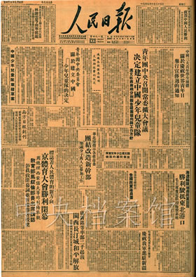 4.1949年 10月 25日,《人民日报》关于团中央决定建立中国少年儿童队的报道