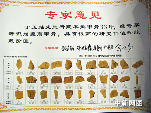 在本次论坛上,厦门当代置业集团副总裁、厦门复文美术馆副馆长、福建海泉兰花实业有限公司董事长丁玉灿,将个人继承、收藏的,经现场专家组“辨识为殷商甲骨,具有很高的研究价值和收藏价值”的三十三片甲骨,无偿地捐赠给南靖县人民政府永久收藏。