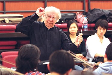 78岁高龄的指挥大师罗日杰斯特文斯基,昨天在上海音乐学院上了一下午的大师班,傍晚又执棒训练上音交响乐团演奏肖斯塔科维奇《第五交响曲》。他的学生、指挥家张国勇说:“老先生就是这样,不肯闲着,为指挥艺术忙碌,是他最大的快乐。”