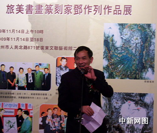 中新网广州11月14日电(记者 莫非 通讯员 叶蓝)旅居美国西雅图著名书画篆刻家邓作列书画艺术作品展,于2009年11月14日至18日在广东文联艺术馆举行,当地侨界与艺术界负责人和书画艺术家、各界友好人士逾百人参加开幕典礼。