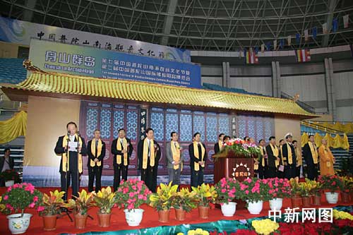 中新网舟山11月15日电(记者 江耘 袁爽 实习生 沈兰)11月15日上午,第七届中国普陀山南海观音文化节在浙江舟山普陀山上开幕。本届文化节吸引了来自日本、泰国、菲律宾、希腊等国家和地区的人士前来参加。