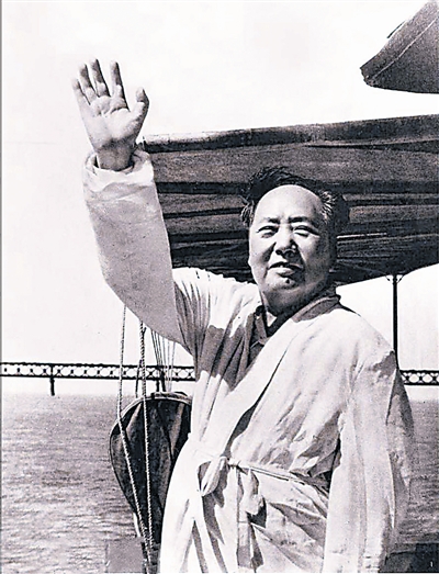 那天毛主席游了1小时5分钟、30多华里。尽兴后,他上了随行的快艇往回走,披上浴袍坐在前甲板上看两岸风光。