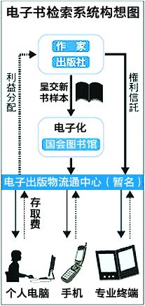 网络收费图书检索的构想源自长尾真馆长发表于2008年4月的一项个人设想,该设想最大的亮点便是设立非盈利的第三方机构“电子出版物流通中心”,全面负责与作家的作品网络发布有关的著作权问题。国会图书馆将藏书的电子数据无偿提供给“电子出版物流通中心”,由该中心以收费方式发送给使用者,随后将征收到的电子书存取费分配给著作权人。据悉,该中心的功能非常近似于眼下“日本音乐著作权协会”受词曲作者委托,向电视台等征收著作权使用费。