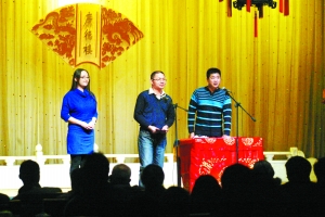老孟到广德楼不是来听相声的,他沉甸甸的电脑包里装着一份合作意向,他一手操持的“山寨春晚”有了新进展,艺馨相声社将帮助“山寨春晚”进行节目的整体运作,包括语言类节目的策划包装。昨晚,在一段相声结束后,老孟和艺馨相声社的总经理孟阳走上舞台,在200多名观众的见证下,孟阳从老孟手里接过了合作意向。颇具戏剧性的是,老孟刚巧站在逗哏的位置,孟阳站在捧哏的一边,一唱一和,缺一不可,今年的“山寨春晚”有戏了?