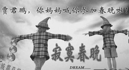 虽然离春节还有一段时间,但山寨春晚的话题再一次被提起。昨日,以拍摄草根电影、山寨奥运、山寨克隆版《风声》、去年举办猪坚强草根春晚而闻名的“成都草根剧组”再一次以乐活精神举起了成都草根春晚的旗帜——今年,成都的草根春晚将大打网络牌,将寂寞党、贾君鹏等一系列轰动网络的热门话题纳入春晚节目中,且春晚名字就叫做“寂寞春晚”。为了办好草根春晚,网友正召集绿林草根,为“寂寞春晚”寻找不甘寂寞的坊间好汉以及山寨场地。