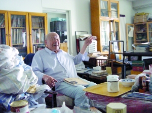 上午10时,我和思猛兄在东岳庙牌楼前聚齐,步行到达王老寓所,门是虚掩上的,轻轻地敲门后,随着老人响亮地“请进”声,我们应声而进。王老时已93岁高龄,但精神矍铄,举止言谈,很难让人把他和93高龄联系到一起。