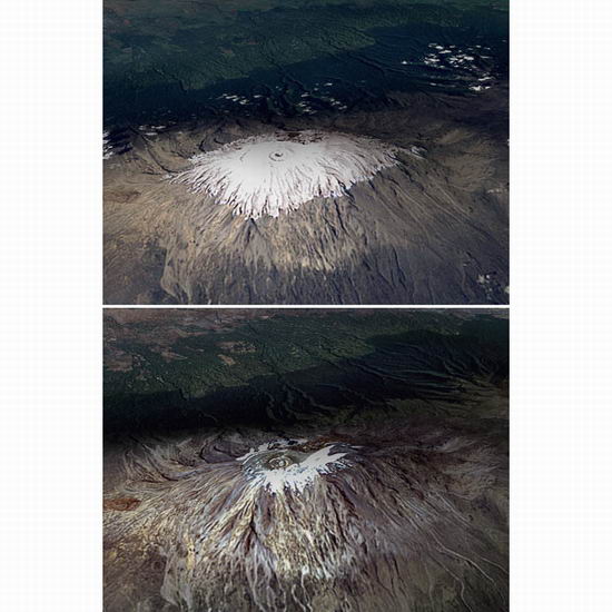坦桑尼亚的环境部长称:“气候变化所带来的影响越来越明显,乞力马扎罗山80%的冰川在过去的50年内消失掉了。”