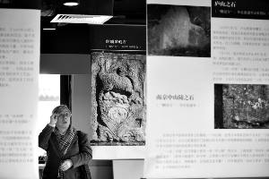 在展出的这些被掠夺走的石头图片中,有明代宫廷雕刻麒麟石、“上海市政府办公厅”唐草纹样拱门石、长城石砖、绥远清代高官墓石、南京中山陵的石头、泰山顶上的石头、南京紫金山上的石头、苏州城的太鼓石、旅顺港的封锁舟之石等。(记者王荟)