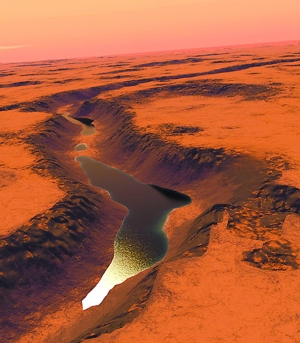 2009年6月18日,由美国宇航局火星侦测轨道器所拍摄的高分辨率图像显示,火星一条山谷中存在明显的远古湖岸线。科学家们认为,这表示当地曾经存在湖泊,该地区将是人类探索火星远古微生物的主要目的地。尽管火星表面的大多数三角洲都已被风沙所侵蚀,但是这条湖岸线由于被一条山谷所保护,因此现在还保存完好。据估计,这个干涸的湖泊大约存在于30亿年前。