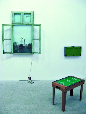 记者了解到,此次展览以装置和影像、综合材料作品为主。夏彦国指出,青年艺术家是当代艺术以后的主要力量,而装置、影像也是未来当代艺术发展的主要方向。比如黑桥艺术区的赵一浅在装置作品《主观 现场》中将童年记忆中的台球桌子、足球场地、小玩具及火车搬入美术馆。而生活在798周边的陈曦、张雪瑞夫妇将展出的影像作品则是循环往复地书写着毕加索的名言:爱情这种事情是不存在的,存在的只是爱情的证据。