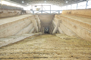 墓地占地面积约800平方米,通过一个39.5米的斜坡墓道,直接通到墓室门口,距离地面15米。如果有一座建筑的话,墓地就位于该建筑的地下五层。