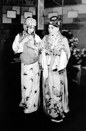 当演到吕昭华的父母议论她的终身大事,要吕昭华回避时,这位一直规规矩矩的大家闺秀竟然躲在门外偷听,似心事重重,又似心悬一线的紧张。当听到父亲果然要把她许配郭廷章的时候,吕昭华一直低着的头突然抬起来,表示惊喜,转而羞得双手捂住脸跑下场。以后他再上场,观众都把他当做少女,早已忘记他是花甲老人了。