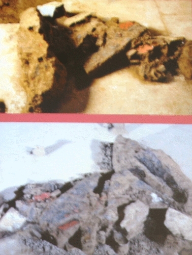 对于质疑“确认曹操墓”的有力证据石牌是从盗墓贼手中缴获,潘伟斌展示的“考古工作人员在清理墓中土层中的石牌”一图用事实澄清了质疑。另据介绍,有的石牌是在腐朽的漆木器叠压处找到的,地层不能做假,所以墓中石牌不可能是盗墓贼或者其他人士移入墓内。