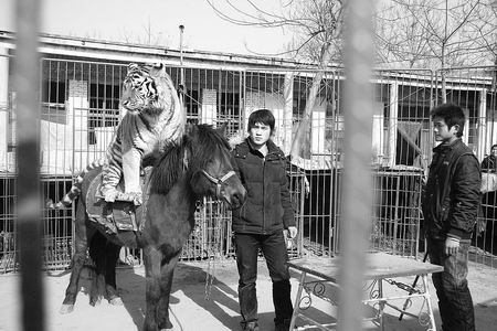 梅庄的驯虎人几乎都是走南闯北的能人,他们的行期和路线都是按照各省大大小小的知名集会、庙会及各类地方性节日安排的。梅庄训练出的老虎一般都会10个左右的节目,如骑马、钻火圈、踏美女、走梅花桩、拉车等。谈起驯成虎的“走穴”经历,胡敬才的大儿子胡卫平感触最多:“每到一处都要租场地、扎大棚,如运作不好,连虎食都赚不回来。”