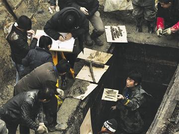 昨日,随着铁器、木器、青铜器、珍贵竹简以及残存头盖骨,陆续从严仓古墓出土,极大地重振了现场发掘人员的信心。