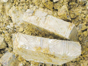 走下山坡看见山腰中间留下了大量挖土机机爪的痕迹,抓痕里不时夹杂着一些墓砖。绕过中间的池塘,我们来到对岸的山坡。同样,这里也是一处墓群,地面上墓砖被丢弃一地,考古专家告诉记者,从土层暴露出来的墓砖看,也是三座大墓,“中间一座肯定是近日被挖开的,这些堆土是新填的,盗墓贼已经将古墓洗劫一空,然后做了伪装,把挖开的古墓又填埋了”。据他介绍,这三座古墓全都是东西向葬式,墓形都很大,从墓形规模可以断定,这是一处六朝早期的贵族墓群。