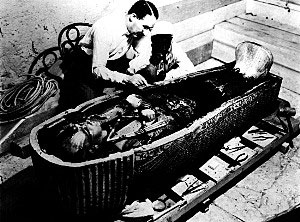图坦卡蒙陵墓的发掘被认为是考古学史上最荣耀的时刻之一。墓穴的四个房间里发现了超过五千件以上的陪葬品,包括家具、香水瓶、苍蝇拍和鸵鸟毛等。最重要的是,卡特发现了一具重约134.3公斤黄金打造的棺椁,找到了戴黄金面具的图坦卡蒙王木乃伊。