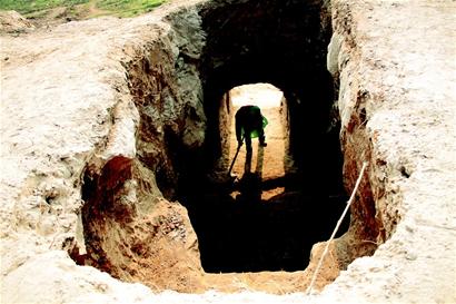 在桐子梁山的东侧,还分布有十几个较小的洞穴。据郭富介绍,这些是六朝时期的崖墓,由于当时不流行火葬,因此墓室规模远小于东汉时期。“从墓葬形制和随葬品推测,崖墓群主体年代在东汉时期,部分延续至六朝时期。”