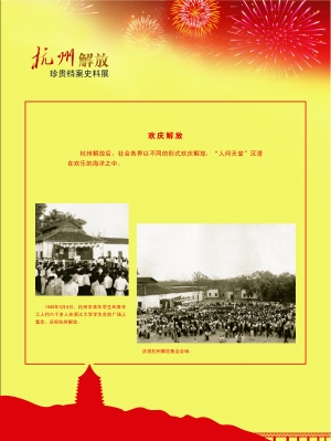 5月3日,在杭州市民的夹道欢迎下,人民解放军浩浩荡荡列队进城。广播电台里传来了“我军胜利解放杭州”的新闻。
