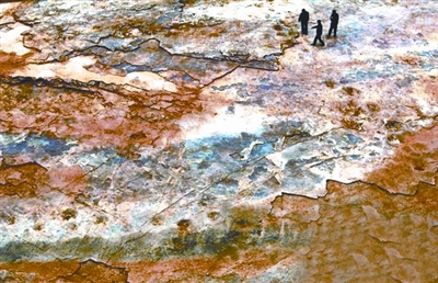 专家还说,据推测,黄龙沟是一处几近干涸的河床,也是众多恐龙的聚居地。成百上千的各种恐龙从松软河床上走过,留下了形态各异的足迹,不久,随着雨季的到来,洪水带来了新的沉积物将这些脚印覆盖,最终形成了足迹化石。