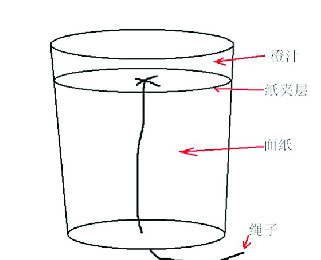 3.左手抽动隐藏在杯底的机关(绳子),夹层松动(夹层只是张蜡纸);