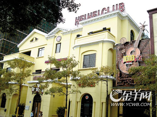 位于广州市沿江中路239号、天字码头斜对面的“黄埔军校同学会旧址”,如今已被粉刷成米黄色,门口悬挂着一把两三米高的吉他模型,门楣上写着 HEIHEI CLUB。 酒吧的主人还在窗口玻璃上贴了一幅巨大的广告词,上面写着“新贵潮人夜蒲首选之地”,标明了这幢楼的新用途。至于何为“新贵 ”、何为“夜蒲”,假如黄埔诸生泉下有知,也无法理解。